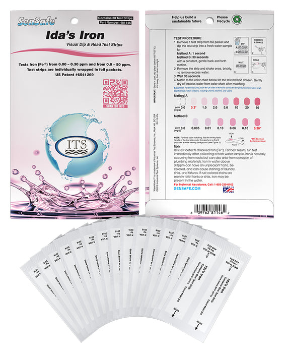 Check your Ferrous Iron (+2) with Confidence using our SenSafe® Ida's Iron Check. Great for extremely low detection of Iron (as low as 0.005 ppm).